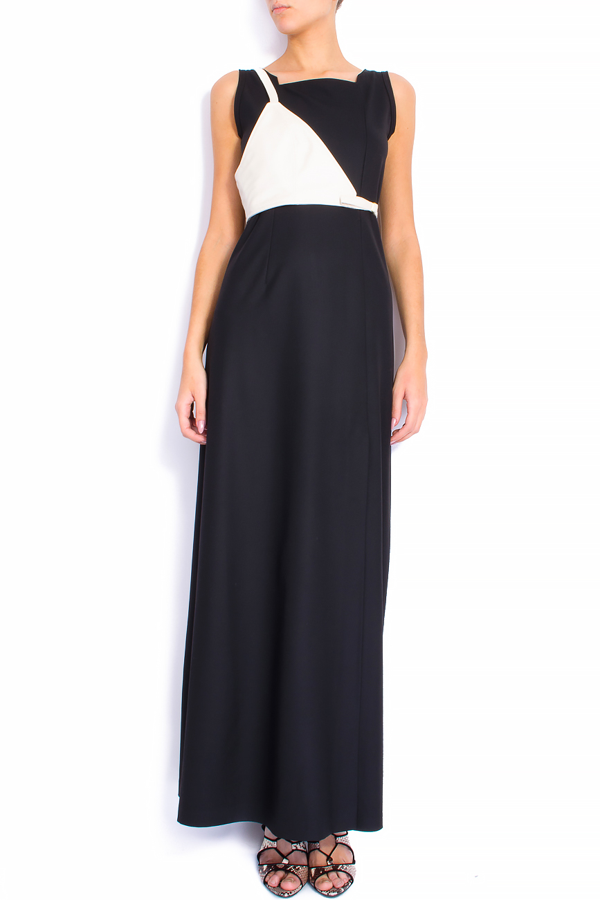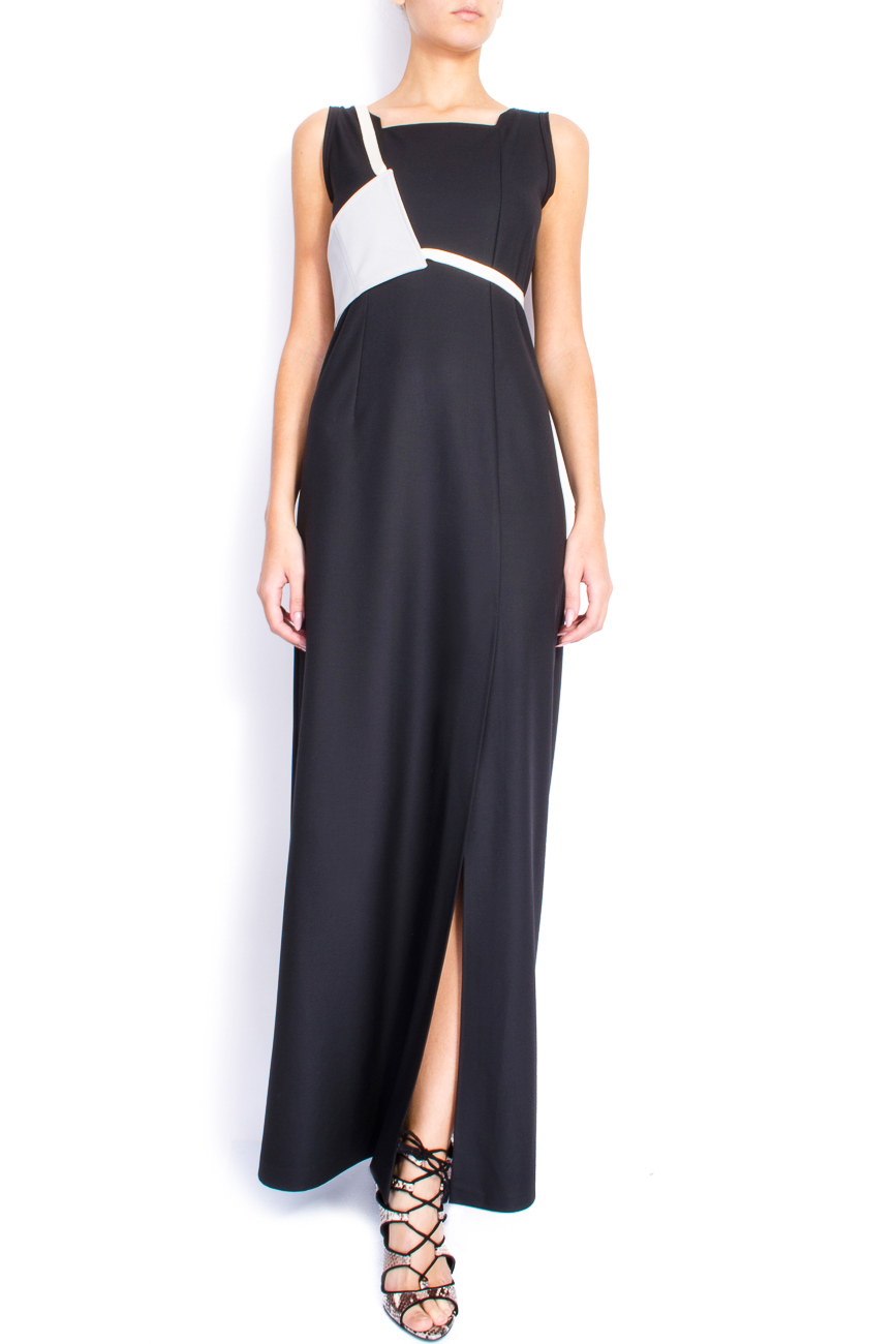 Crepe Black Collar's black wool-crepe dress has a boxy cut, creating a sleek, streamlined silhouette. This elegant Romanian-made style is split at the skirt for ease of movement and has a faux-leather harness. Complement yours with tonal heels and silver jewelry.