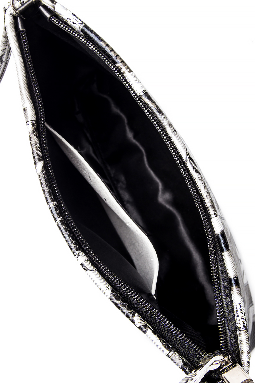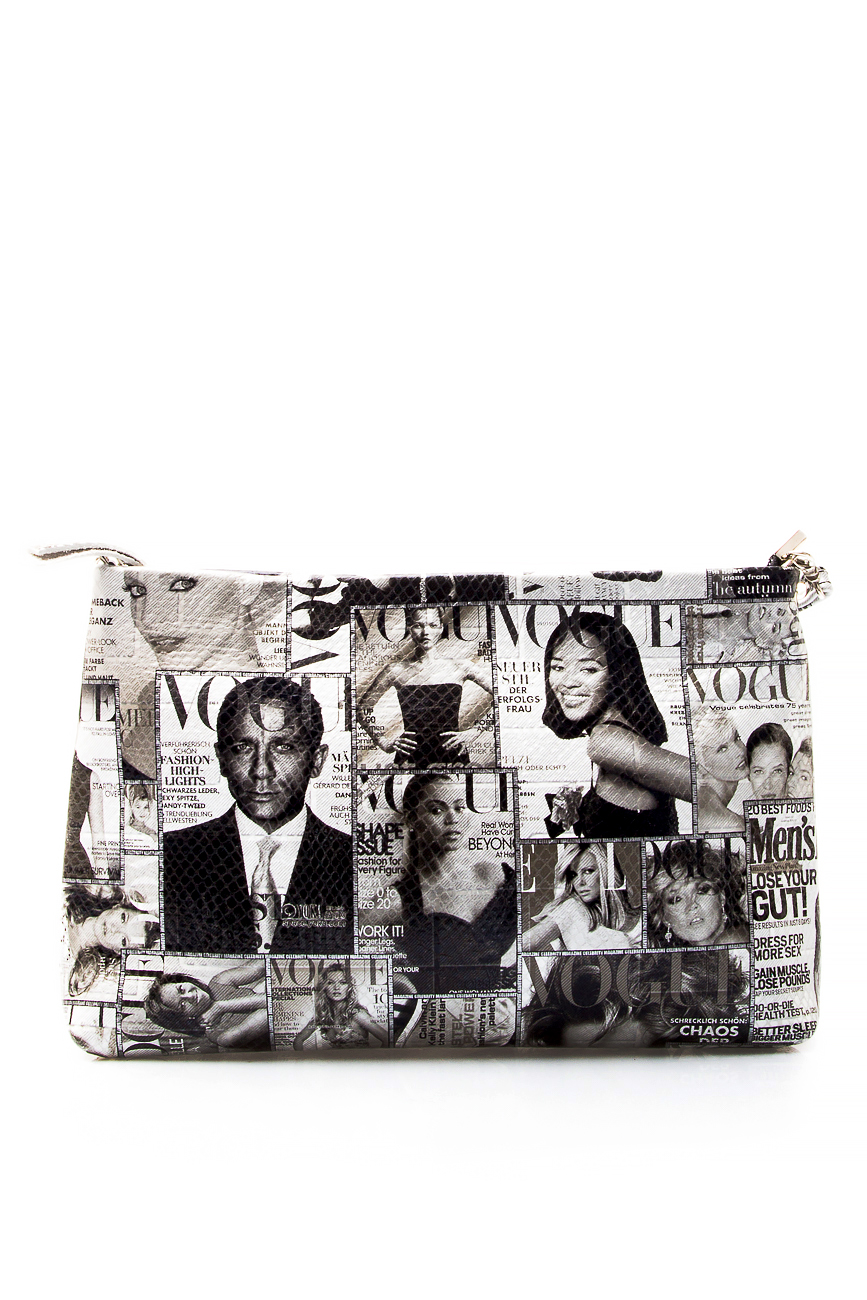 Laura Olaru's Spring '15 collection is inspired by Vogue Magaznie covers. This playful leather clutch is printed with black and white magazine covers. Inside this compact, satin-lined piece you'll find space for everything.